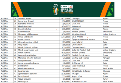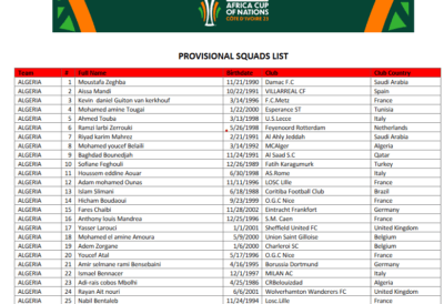Rendues public aujourd’hui conformément à la réglementation de la coupe d’Afrique des nations, les listes des 24 sélections qualifiées vont faire couler un peu d’encre. Attendue, comme la lune de l’Aid, la liste élargie de Belmadi va faire jaser sur les réseaux sociaux.