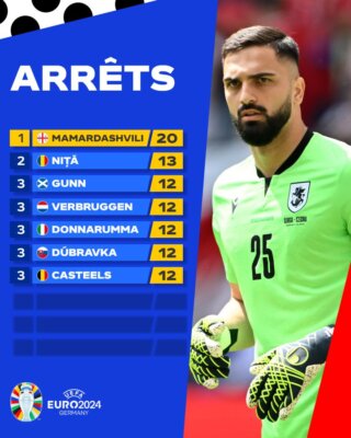 C’est logiquement qu’il se retrouve en tête des portiers les plus décisifs de ce premier tour avec 2O arrêts décisifs suivi du gardien de la Roumanie, Nita avec 13 cleanshit. Donnaruma l’Italien, Gunn, l’Écossais, Verbruggen, le Hollandais, Dubravka, le slovaque et le Belge, Casteels occupent la 3eme place avec 12 arrêts.