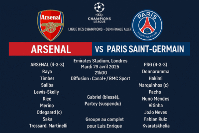 Ce mardi soir, l’Emirates Stadium sera le théâtre d’une affiche de gala entre Arsenal et le Paris Saint-Germain en demi-finale aller de la Ligue des Champions. Un choc aux allures de finale avant l’heure, opposant deux formations ambitieuses et résolument tournées vers l’avant. Si le PSG traverse une période délicate, le club parisien pourra compter sur un effectif au complet pour relever le plus grand défi de sa saison.