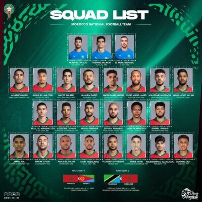 Walid Regragui, sélectionneur du Maroc, a donné sa liste de joueurs convoqués pour affronter l’Érythrée (16 novembre) et la Tanzanie en éliminatoires de la Coupe du Monde.